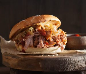 Pulled pork is langzaam gegaard varkensvlees en wordt afgewerkt met coleslaw, heerlijke witte kool salade met dressing van mayonaise.